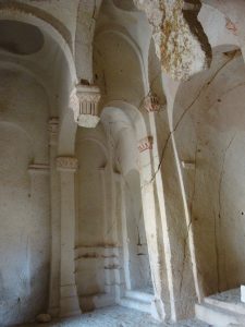 Here, you will find yourself in a natural courtyard reminiscent of those at the Açık Saray at nearby Gülşehir. The crosses, pilasters, and arcades of horseshoe-shaped arches adorning the façade hint that this must once have been an important settlement, an impression that will be confirmed when you step inside the church and spot its lofty rock-cut columns. In the 10th or 11th century, these were decorated with paintings which betray an almost child-like simplicity; the only sign of anything grander is a panel of virtually indecipherable fresco still adorning the apse.