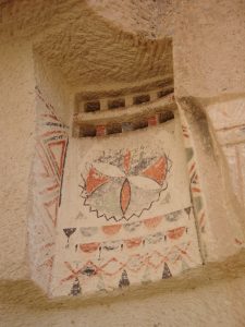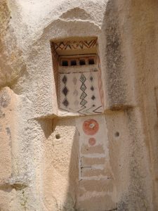 Long after the monks were gone the locals returned to carve pigeon-houses into the rock. These are decorated with fine geometric patterns in blue and green. It’s a mystery why so few people visit a place so beautiful.