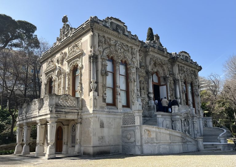 On a sunny day in spring it’s well wort heading inland from the waterfront at Beşiktaş along Ortabahçe Caddesi to find the Ihlamur Kasrı (closed Mondays, admission TL130). This was designed by Nigoğayos Balyan for Sultan Abdülmecid I (r. 1839-61), who wanted a lodge where he could break the journey between Dolmabahçe Sarayı and the Golden Horn shipyards at Kasımpaşa. The end result was a pair of pavilions in a small landscaped park, one of which, the Mabeyn Köşkü, would host the sultan and his guests, while the other, the Maiyet Köşkü, would host his harem.