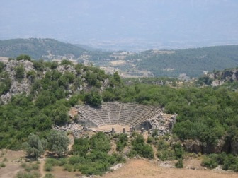 Otherwise, the road continues straight on from the ticket office and, eventually, on the right you will see the neat semicircle of a small, grey-stone theatre, its tered seats virtually intact. Sitting on them, the residents of Pınara would have had a fine view of their city thrown in as a free backdrop to every performance.