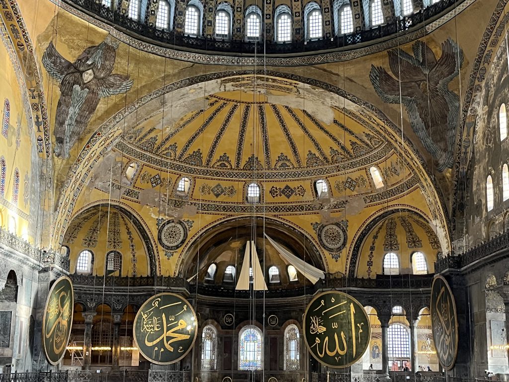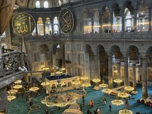 In 2020 the museum was closed and the ancient church reopened as Ayasofya Cami, hugely increasing the congestion as worshippers joined tourists in the prayer hall. Perhaps inevitably in 2024 the gallery was reopened as a museum and tourists were barred from the prayer hall with the exception of foreign Muslims who can enter at prayer times and non-Muslim Turks who can go in in between prayer times on production of their kimliks (ID cards). It remains to be seen whether the gallery will be able to cope with the number of tourists wanting to visit in high season.