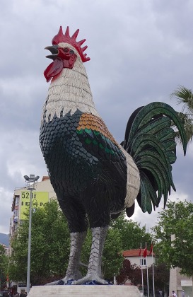 Denizli horoz (rooster) immortalised near Çınar Meydanı