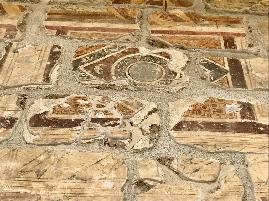 Dotted about are the remains of villas whose courtyards were floored with marble or opus sectile. You can even go in search of the old stadium, now just an oblong outline in the grass, You can easily spend a couple of hours here. The site is at its best in May when poppies run riot amid the marble.