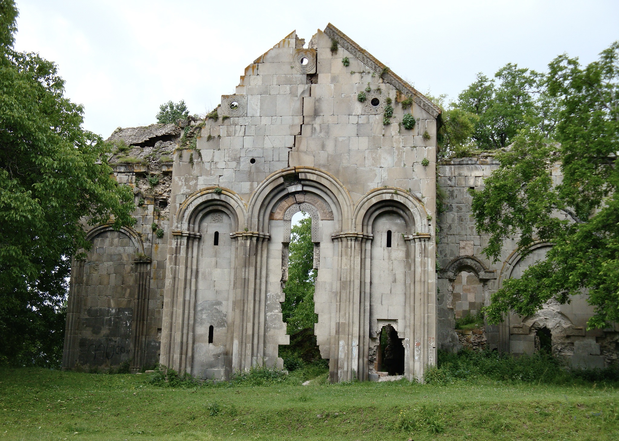 The remains of the church soon loom up on the left. A Georgian structure dating back to c. 910, it is a mere roofless shell having been dynamited in the 1960s, but still retains some decorative flourishes and a consecration cross on the façade, and a small patch of abstract fresco over one window. Locals will show you a photo of what it looked like when still in use in 1888.