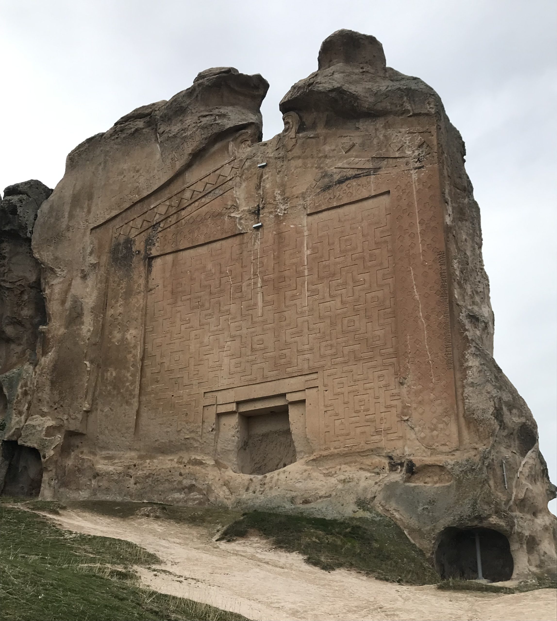Facing the tomb is what is thought to have been a Cappadocian-style rock-cut monastery or perhaps a multi-storey apartment block like the one at Uçhisar. If you stand back and look up at it from a certain angle you’ll see the profile of a person with a pointed nose looking out from the rock.
