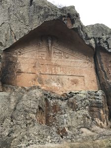 Its most conspicuous monument is a soaring, decorative rock-cut structure that is known as the Tomb of Midas because the Phrygian inscription on the facade mentions a Midas (although not necessarily the well known King Midas of the ass’s ears). A statue of Kybele, the Mother Goddess, may once have stood in front of it.