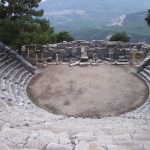 There’s not a lot else to see here although many huge chunks of marble masonry lie scattered on the ground and the spot is so idyllic that you might want to linger for a picnic. But just a short walk away you can explore an all-but-forgotten Roman theatre standing right beside the road which leaves it vulnerable to graffiti artistes and pesky wannabe guides.
