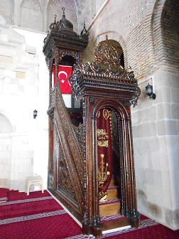 Inside, it is the usual Selçuk sea of stone arches with all the decorative attention focused on the domed area around the mihrab. Beside it the mimber is a splendid piece of woodwork, as beautiful as anything I can remember in other mosques. The information on site suggests that the original is in the Ankara Ethnography Museum but I was left unsure whether it had been returned here, so lovely was the wooden carving which includes crown-like ornaments and even vases of flowers.
