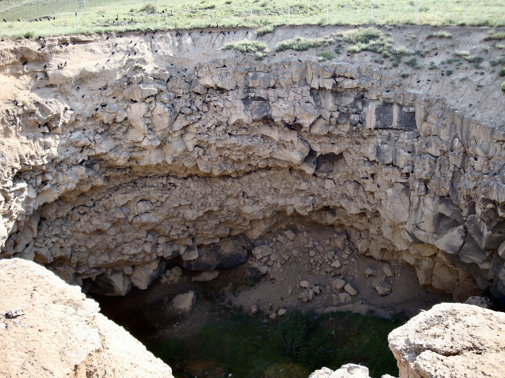 If you’re driving from Doğubayazıt in Eastern Turkey to the Iranian border you will pass a signposted turn-off to the north that winds 4km into the fields and brings you to a huge crater apparently created in 1892. It once measured 35m round by 60m deep but is slowly being filled in by accumulated silt. Hundreds of jackdaws nest in its walls.
