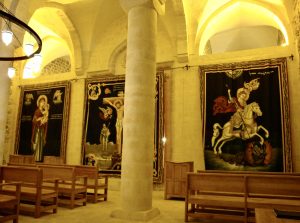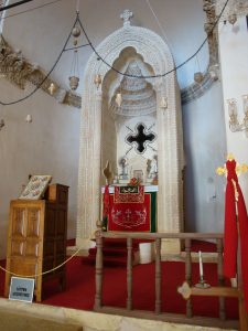 The monastery Church of the Mother of God, to one side of a courtyard centred on a well and ringed with porticoes, is surprisingly small but very atmospheric. It dates back to the early 6th, as does the Beth Kadishe (funerary chapel). The altar only dates back to 1941 but is covered with a wooden canopy of traditional Tur Abdin design. Some of the painted wall hangings were created by members of the Mardinli Şimmeshindi family.