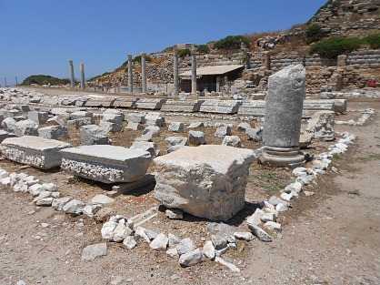 Landing at Knidos today you will find yourself coming straight to a large area cleared by archaeologists where a stoa once ran along the back of a vast agora. Here remains of a temple to Dionysius have been uncovered with a church built over them at a later date.