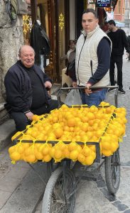 Even in the big conurbations street traders still shout their wares. In Çukurcuma where I live we are still visited by mobile manavs, fish merchants, strawberry sellers, sellers of lemons and garlic, and purveyors of diary items who travel in from the countryside on a weekly basis. In winter boza and sahlep sellers also do the rounds.