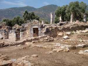 LibraryThere’s probably much more to be uncovered at Nysa when and if funds permit. But near the exit you should pause to inspect one last relic of the past: the excavated remnants of a Byzantine church dating back to the period when Nysa had become the seat of a bishopric. On the hillside across the road there are traces of an extensive necropolis (burial ground) where tombs were arranged in neatly-aligned tiers.