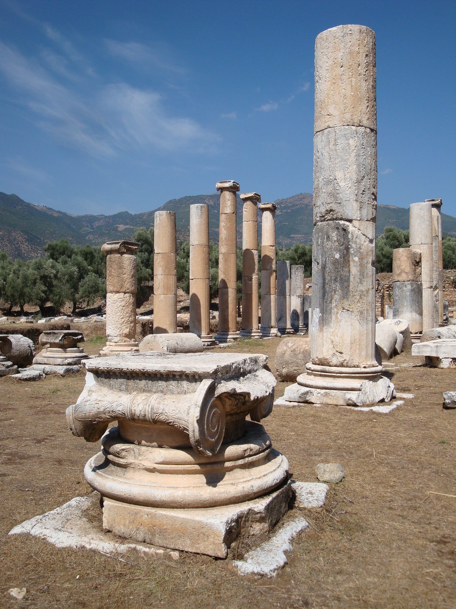 But it was perhaps that little bit too close to the major settlement at Tralles, above modern Aydın, and slowly but surely the hillside site was abandoned in favour of what is now Sultanhısar. The great thing about that change of location is that it left the ruins of the original settlement virtually undisturbed. Today they spill out amid the olive groves on the slopes of Malkaç Dağı (Mt Messogis, 875m), abandoned to the skylarks and the occasional more enterprising tourist.