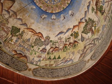 But perhaps the most striking feature of the complex is the şadırvan (fountain), one of a group with those in Tokat and Amasya that feature large “witch’s hat” caps over deep marble pools of water with taps set into the side. Like the one at the II Beyazıd complex in Amasya, this one has lovely folk art paintings dating back to 1875 on its interior as well as calligraphic panels running round the edge. The pictures are thought to show İstanbul, Amasya and the Turkish army before the gates of Vienna. A roundel amid the paintings identifies the artist as Emin from Zile. One would assume his was also the hand behind the Amasya şadırvan.