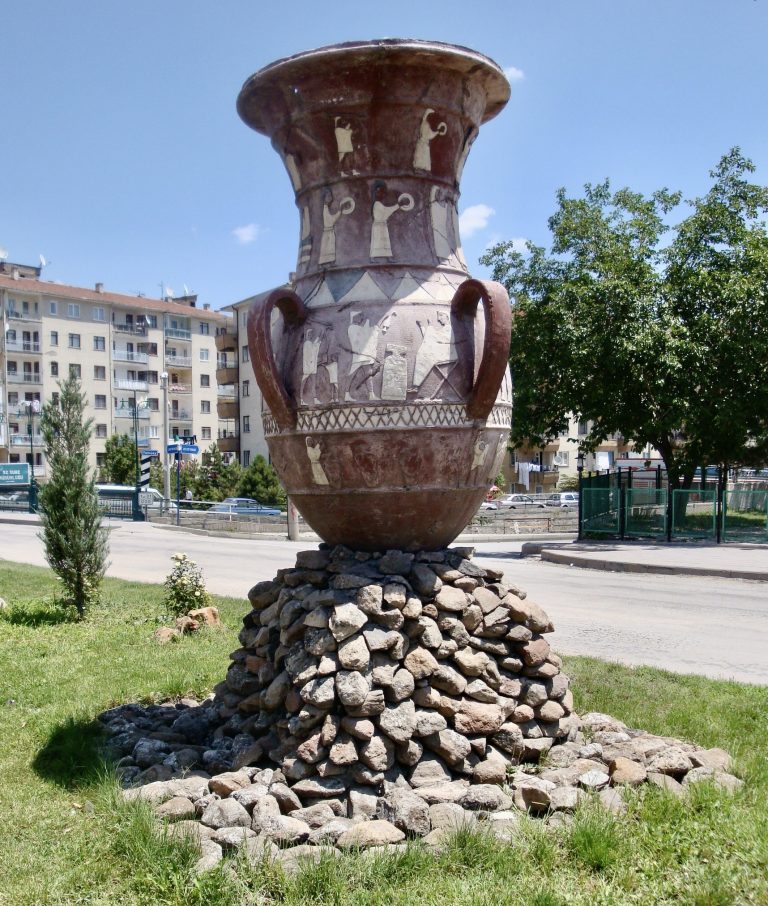 As so often, initial impressions are somewhat misleading. Çankırı high street is a long canyon of concrete shop-cum-housing blocks. One of those blocks, however, houses a small museum which is the best place to start your explorations. Here you will be able to inspect the evidence of the city’s long history which predates the Hittites. They, however, left the town it’s most significant antiquarian object- a huge red-clay vase decorated with images of a wedding. The original is now in the Ankara Museum of Anatolian Civilisations while an even larger copy stands near the bus station as a symbol of the town.