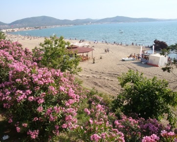 Today, sadly, the scant ruins stand locked behind a fence and tidied up beside a café on the waterfront. Disappointing as they are, they do nonetheless provide an excuse to wander around what is probably the prettiest and most upmarket beach resort along this part of the coast, a place where low-rise holiday homes are almost hidden amid the lush growth of mature gardens just seconds away from a fine stretch of sand.