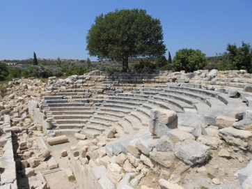 If you walk straight ahead from the temple you will come to the finest ruins on the site which your taxi driver will probably tell you are of the theatre but are in reality the remains of a very sizeable bouleterion, probably originally built at about the same time as the temple but remodelled, as so often, in the 1st century AD by local dignitaries whose names appeared on the statue bases found here.