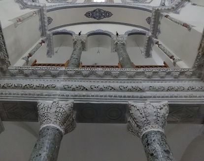 Its rather plain exterior gives no hint at the beauty of the interior where a two-storey colonnade runs round an octagonal hall beneath an exquisite dome. The columns still retain their beautifully carved Byzantine capitals some of them still showing off the initials of Justinian and his wife, Theodora. Deeply carved inscriptions also run round the colonnade.
