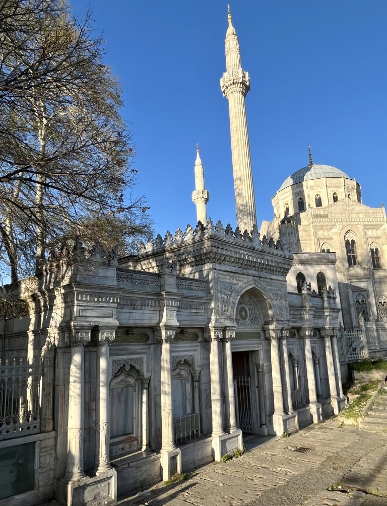 It could hardly have a less impressive setting but the Valide Sultan Cami designed in 1871 for Sultan Abdülaziz’s mother, Pertevnyal Valide Sultan, is nonetheless a striking and impressive building provided you are not the sort of person for whom “real” Ottoman architecture came to a halt in the early 18th century. By the time it was built the idea of enormous complexes to accompany a mosque had gone out of fashion although there is still a school in the queen mother’s name just round the corner on Atatürk Bulvarı that was built just one year later.