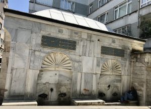 As you pass through the chaos of Aksaray Meydanı (Square) look out for a triple fountain set into the outer wall of the restored Kızıl Minare Cami, said to be the only mosque in İstanbul whose minaret rises from right inside it.