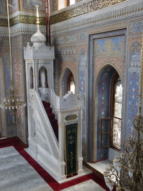 There is some uncertainty about the architect behind the mosque; some credit it to Sarkis and Agop Balyan, others to an Italian architect called Montani. Either way, it was built in a baroque style with much frilly decoration around the windows, a smallish dome and two thin minarets. Restoration has given it grey carpeting so that at first glance it looks as if the entire inside is made out of marble, a stunning sight.