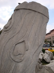 Look for the huge hunks of marble, some of them decorated with stone teardrops, sitting beside the main road – once upon a time they formed parts of a huge triumphal arch probably erected shortly after the reign of the Emperor Theodosius (r.379-395) who had the square renamed the Forum Theodosius after himself. It may once have been adorned with statues of Theodosius and his sons Honorius and Arcadius.