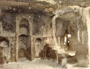 Not far from the Büyük Kilise Cami you’ll find the entrance to one of Güzelyurt’s two underground cities, pieces in a complex network of hiding places that can be found all over Cappadocia and are believed to date back in part to Hittite times. This one shows clear signs of later reuse with tandır ovens cut into the ground for cooking, but its most famous feature is its squat toilet, isolated along a narrow corridor and the only such convenience so far identified in the underground cities.