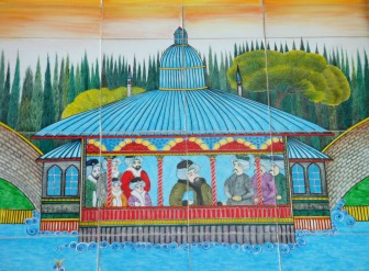 The tiles at the base of the Eyüp funicular on the other side of the Golden Horn depict the pavilion in its heyday, with the sultan watching acrobatics taking place on the water right in front of it. The images were copied from an early 18th-century book called the Surname which was produced by the miniaturist Abdülcelil Levni Çelebi to commemorate the circumcision party thrown in the pavilion for Sultan Ahmed III’s sons.