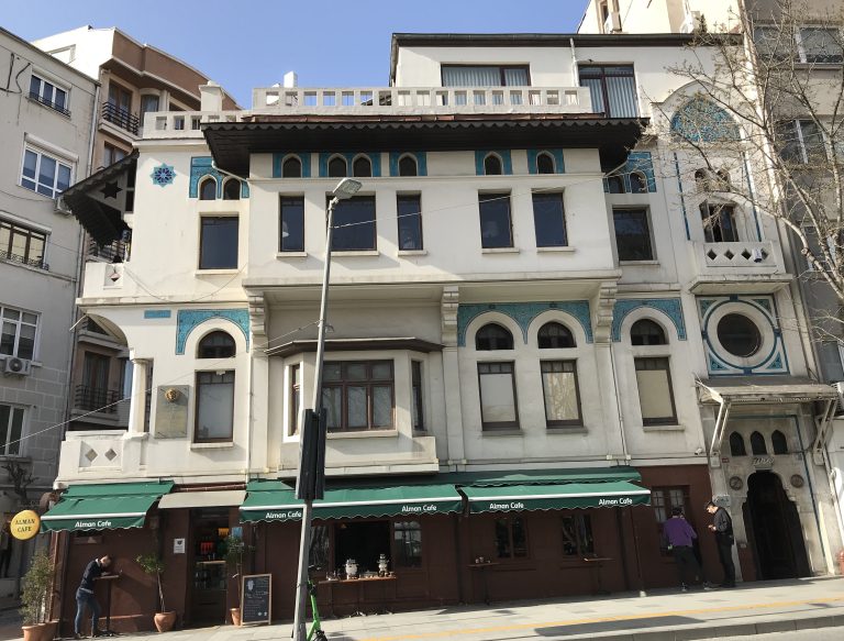 Facing the park is one of the most conspicuous and intriguing houses in the area, not least because it was built in the First National style of architecture, an attempt to create a truly Turkish style of modern architecture that stands in sharp contrast to the more European-looking blocks all around it. This is the Vedat Tek Konağı, erstwhile home to the architect, Vedat Tek (1873-1942), and its facade features all his signature tricks: thick lancet windows, an overhanging roofline, star-shaped cutouts and panels of turquoise tiles.
