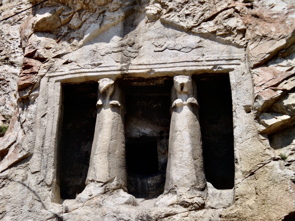 Returning to ground level it’s worth strolling round the base of the rock to find a couple of rock-cut tombs said to date back to Roman times; one comes with bull’s heads capitals on its pillared facade and with angels (or Cupids) flying above them.