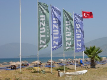 It’s also possible to get to the beach by dolmuş. This will drop you at the less crowded end of the sand where there is a single mildly overpriced cafe.