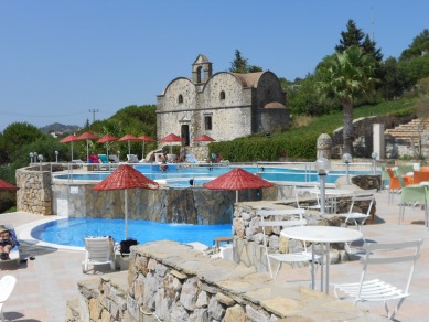 If you continue north just a little way from the mosque you will see, on the inland side of the road, an abandoned 19th-century monastic church. Walk uphill to take a closer look and you’ll find that it’s no more than a shell serving as a picturesque backdrop for social facilities consisting of a swimming pool and cafe (no alcohol) with a fine view back over the resort.