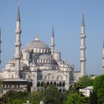 If you then walk back up the tramlines towards Sultanahmet you will see on the far side of the tramlines what was until recently a children’s court housed in a building erected in 1875 to serve as a military college. It is now a university building.Past it stands the Zeynep Sultan Cami designed by Mehmed Tahir Ağa in 1760 for the daughter of Sultan Ahmed III. Beside it is what was once a contemporary primary school and now houses the Turkish Monuments Association. Both buildings illustrate the way in which aspects of Byzantine architecture – the striped brickwork, the dome of the mosque – continued into quite late in the Ottoman era.