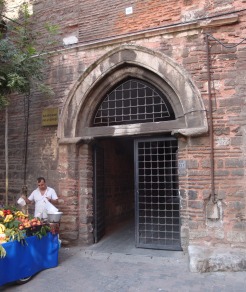 Typically Gothic entrance to Arap CamiIf you turn left into Galata Mahkamesi Sokak and keep walking you will come eventually to the enormous Arap Cami (Arab Mosque), whose square tower and rectangular walls make it plain that it actually started life as a church. It was apparently built by Dominican Friars in 1323 and seems to have been mainly used by the Genoese community to judge from the around 120 gravestones found during excavations. They in turn seem to have built on a site already occupied by a Byzantine church of St Paul. In 1475 the church was given to the Moors who had been expelled from Spain in 1492, hence its name, the Arab Mosque. The friars then moved uphill towards a new site near the Galata Tower.