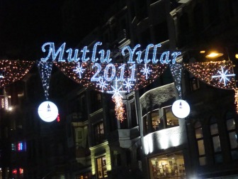 Arriving in Turkey in the days leading up to the New Year, you could be forgiven for thinking that they’ve left the Christmas decorations up everywhere, except that those trees and other decorations are actually there to celebrate New Year (Yılbaşı), the Turks having slowly absorbed almost all the traditions of the Western Christmas except the religious ones and then time-shifted them onto the New Year. “Mutlu Yıllar” say the those banners strung across the street. Happy New Year!