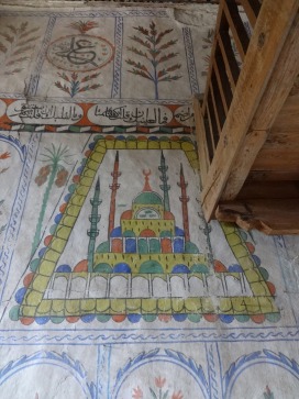 Nearby is a representation of Mecca and the Ka’aba while on the righthand wall there is an image of the mosque at Medina with its many minarets.