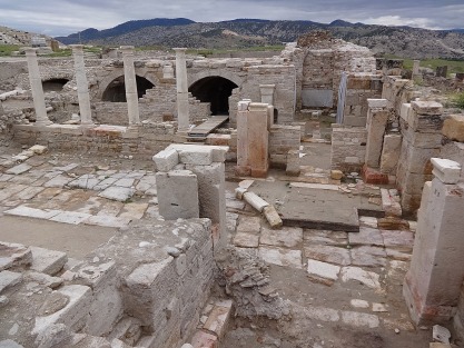 Away from the main excavation area a separate section appears to have uncovered the outline of a bathhouse with mosaic floors. In 2020 a huge 2nd-century monumental fountain was also uncovered.