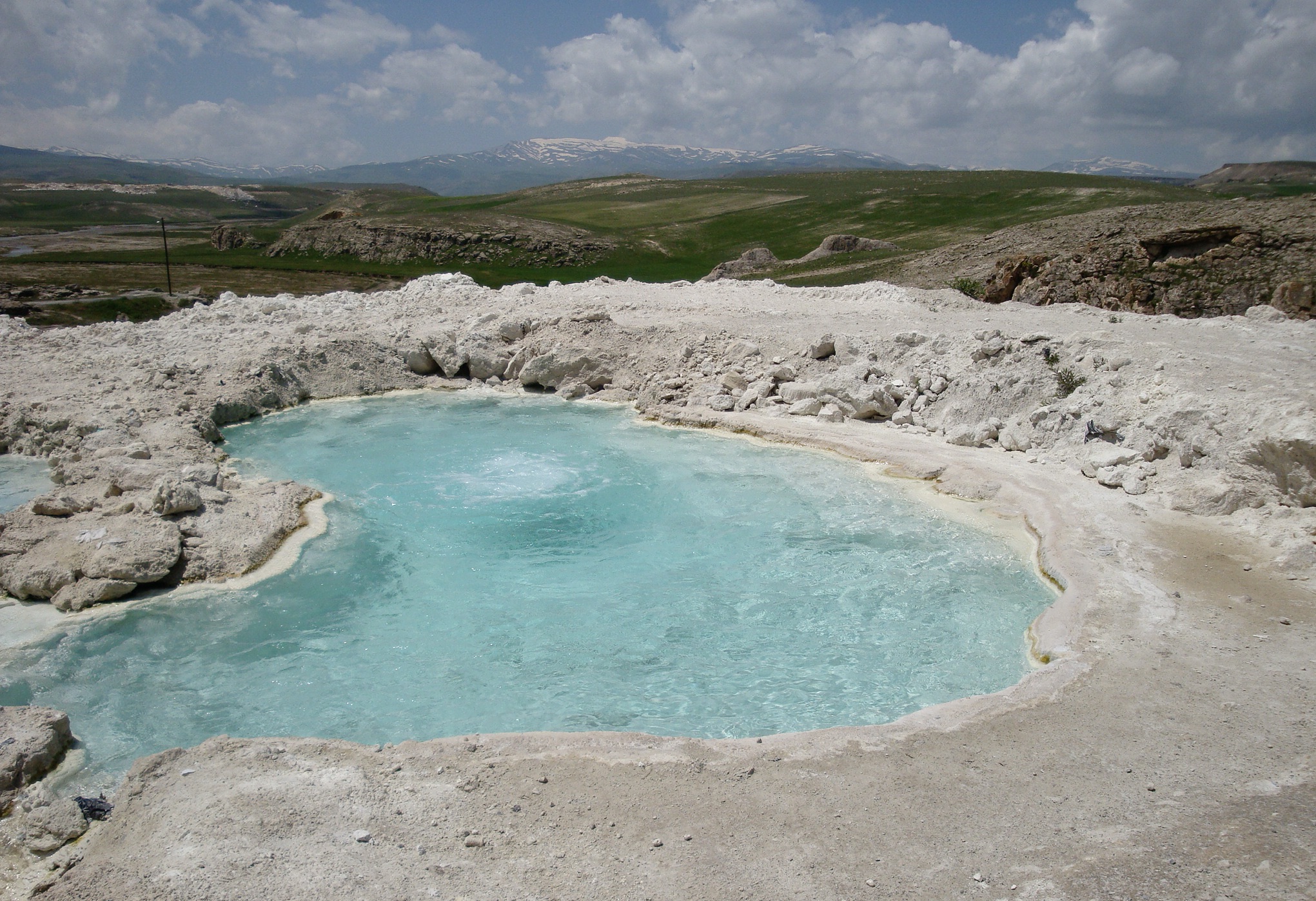 To capitalise on the hot water six kaplıcas (hot spring resorts) have been created where you can either swim very cheaply in a public pool or hire a private bath. It’s a nice idea but sadly the bath complexes are all extremely crude and ugly and surrounded with rubbish. More interesting are the pools of pure turquoise reminiscent of miniature Pamukkales that can be seen beside the oldest of the complexes.