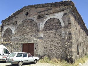 The back streets near the Merkez Cami still contain some older houses built from the local stone, at least one with a fine carved gateway. If you keep walking you will probably emerge on a ridge made from huge slabs of stone now used for threshing corn. Beside it is a poplar-lined gully with some scant ruins at the bottom. They are the last remains of the once huge Monastery of Surp Astvatsatsin that dated back to at least the early 16th century and must have been demolished some time after 1915. The British traveller, Gertrude Bell, stayed in the monastery (reluctantly) in 1909 and took many photographs of the fine late 5th or early 6th-century Byzantine Church of the Panaghia which has been completely destroyed.