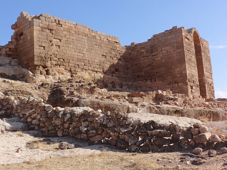 South of the road connecting Şanlıurfa with Viranşehir, in the area known as the Tektek Dağları, is the small and dusty settlement of Eskikale which sits around the base of the impressive remains of Cimdin Kalesi, high on a mound and ringed with a rock-cut ditch that once served as a moat. Little is certain about the history of the castle although work on it is thought to have started in Byzantine times. Most of what survives probably dates from the period when the Ayyubid dynasty (late 12th and 13th centuries) ruled this part of Anatolia.