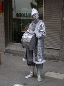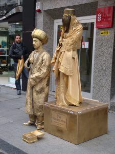 Starting again, I found myself in one of those pedestrianised shopping-street canyons that could be anywhere in the world, frankly, were it nor for the signs in Turkish and the food on offer in the restaurants. Correction. There were perhaps fewer chain stores than I might have expected (no Starbucks, for example) but you know what I mean. And just to confirm how international this part of İzmir was I soon came across a crowd gathered to observe a group of living statues (here called “soğuk heykeleri” – cold statues) of the sort one is always manoeuvring around in Covent Garden. Painted in gold and silver, they were a wow with the crowd, including a headscarfed matron who paused to be photographed cuddling very gingerly up to one of them. A little further on and I was sidestepping a Greenpeace chugger in high-vis green jacket. Really, it could have been London.