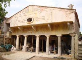 The church that was once the heart of the village is being restored. The cartouche above the portico dates it back only to 1949, when those responsible for it could have had no idea how short a time their community had left on the island. The portico is lined with marble columns and capitals clearly taken from a Byzantine ruin, suggesting that as recently as the 1940s such pieces were still available for use as building materials.