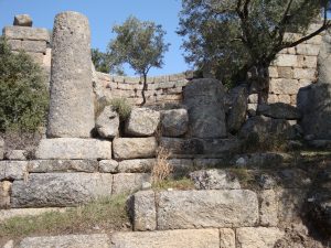 From here it’s also possible to see the shell of an ancient temple to Athena standing alone on a bluff overlooking the lake. Scant remains of an ancient theatre can just about be picked out amid boulders that lie scattered behind the village, and it’s also possible to make out stretches of the Hellenistic walls and towers that once extended for 6.5km.