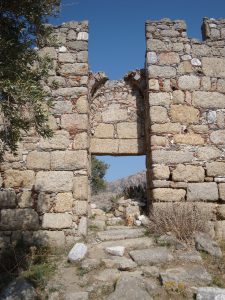 But there’s much more to see in Kapıkırı than just the shrine. Signs about the village point to a bouleterion (council house), a group of column bases in someone’s backyard and to an agora (market place) which stood where once there was a village school-house, itself now ancient history; the most imposing structure here is a hefty wall pierced with windows that runs alongside the old playing field.