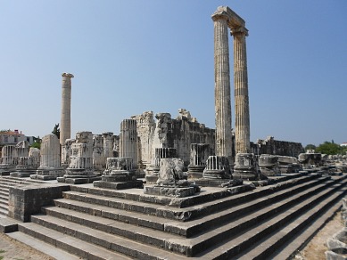 Unlike Priene and Miletus, Didyma was never a town. Instead it was the site of an enormous temple and home to the priests who managed it. Today enough of that huge temple, dedicated to the sun god Apollo and supported by 108 massive columns, still stands, making it possible to imagine what an awe-inspiring sight it must have presented to the pilgrims of antiquity.