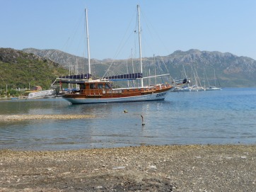 A long walk over the headland would eventually bring you to the remains of ancient Loryma. I haven’t done it myself.