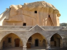 Next door to the Old Greek House there’s a magnificent gateway with what look like lion cubs carved on either side of it. This was built for Serapheim Rizos (1799-1889), a local benefactor, who had inscribed over it the words: ‘Man! If you are a friend, leave in happiness. If you are an enemy who threatens, keep away from this gate.’ His son Nicholas Rizos went on to become a scholar and the author of one of the first books about Cappadocia.