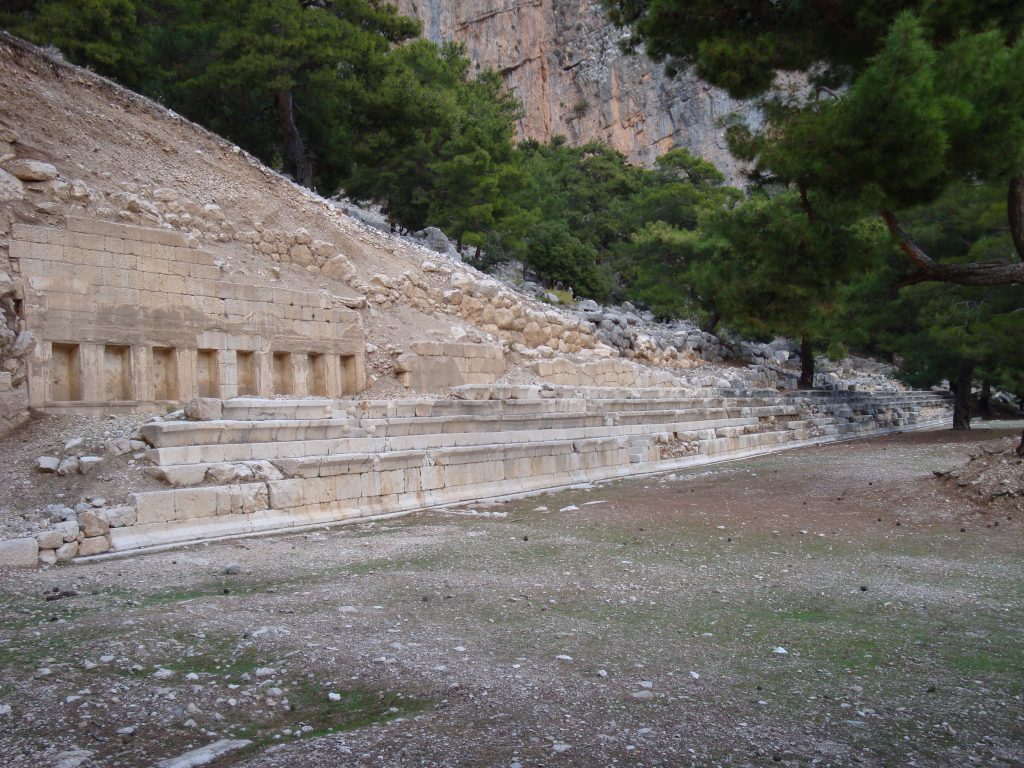 While most of Turkey’s greatest archaeological sites receive more than their fair share of visitors, lovely Arykanda is on the road to nowhere (well, only Elmalı anyway) and so goes virtually ignored. This is a great shame since the views from its lofty theatre are almost matchless. Here, too, you`ll find a vast bathhouse, a basilica, and a wonderful terrace that may have served as an outdoor council chamber with a small odeon tucked away behind it. Right above the theatre there`s even a stadium with seats along one side only so that spectators could soak up the view in between events.