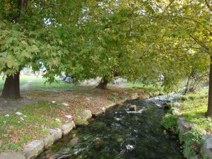 Far more visually appealing is a ruined temple, also on a plinth, which stands right beside the footpath. If you skirt round the base of this it’s rather like stepping through the back of the wardrobe into Narnia – except that in this case you step into what looks like a Constable painting of the English countryside around Flatford Mill, complete with a stream, copious deciduous trees and low stone bridges. What makes Limyra unusual is that it was built beside a river at the point where a spring emerged from Tocak Dağı (Mt Tocak) and bubbled up right beside the municipal buildings. Today you can make out what looks like the floor plan of a basilican church just beneath the water, while the columns of the temple had to be erected on the plinth to keep them dry.